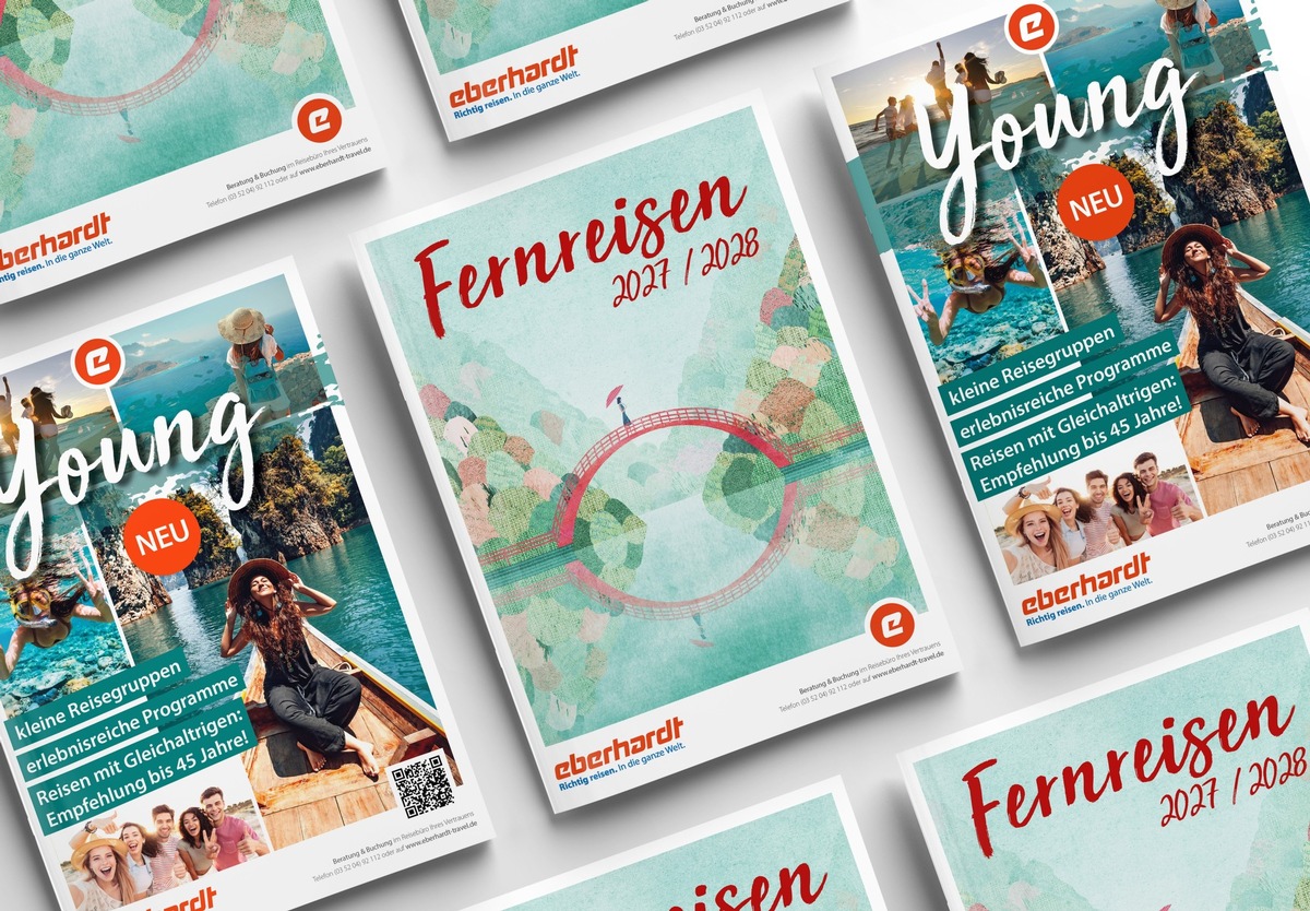 Der Fernkatalog sowie die YOUNG-Broschüre sind ab sofort kostenfrei bestellbar – sowohl als gedruckte Ausgabe als auch digital als Blätterkatalog (Bestellung über info@eberhardt-travel.de oder über die Beratungshotline Tel. 035204-92112 oder für Reisebüros im Agenturbereich).