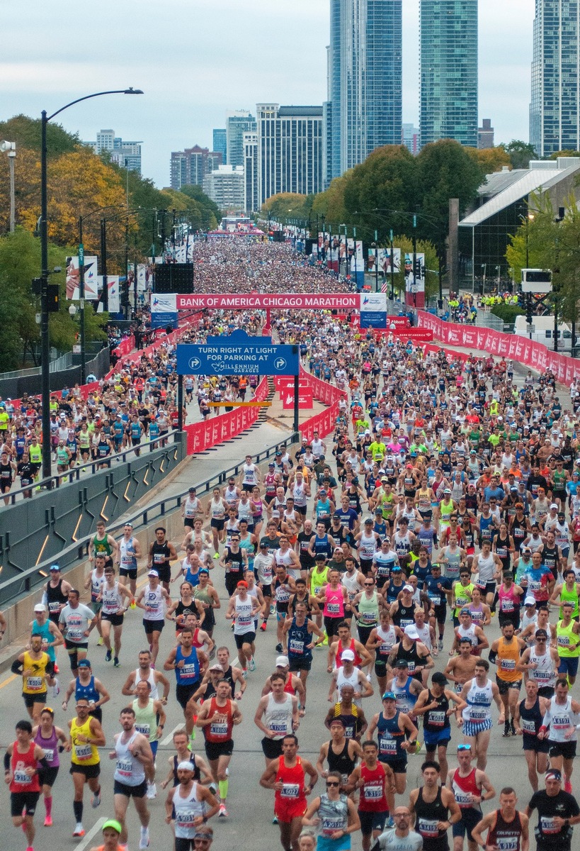 Der Bank of America Chicago Marathon zieht jährlich über 53.000 Teilnehmende aus mehr als 100 Ländern an und gehört damit zu den renommiertesten Laufwettbewerben weltweit. Neben sportlicher Spitzenleistung überzeugt das Event mit seiner außergewöhnlichen Kulisse. Start- und Zielgelände ist der Grant Park, eingerahmt vom glitzernden Lake Michigan zur einen und Chicagos imposanter Skyline zu den drei übrigen Seiten. Von dort führt die Strecke durch 29 Stadtteile, mit dabei Lincoln Park, Northalsted, Greek- und Chinatown, und entlang weltberühmter Straßenzüge und Wahrzeichen, die dem Marathon Sightseeing-Charakter verleihen. Echte Highlights sind das Wrigley Building, der Tribune Tower, die Brücken des Chicago River sowie die Crème de la Crème der Sportstadien, Theater und Museen. Rund 1,7 Millionen Zuschauer entlang der Strecke sorgen zusätzlich für Gänsehaut.