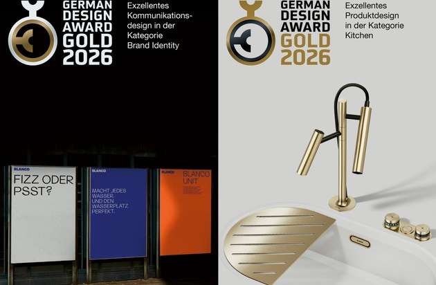 Doppelauszeichnung für BLANCO: German Design Award 2026 in Gold für Produkt- und Markendesign