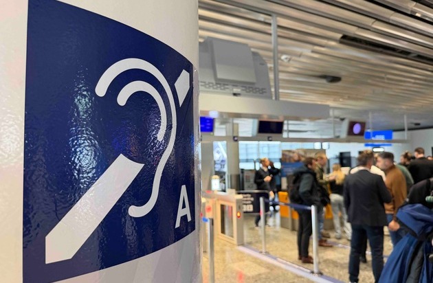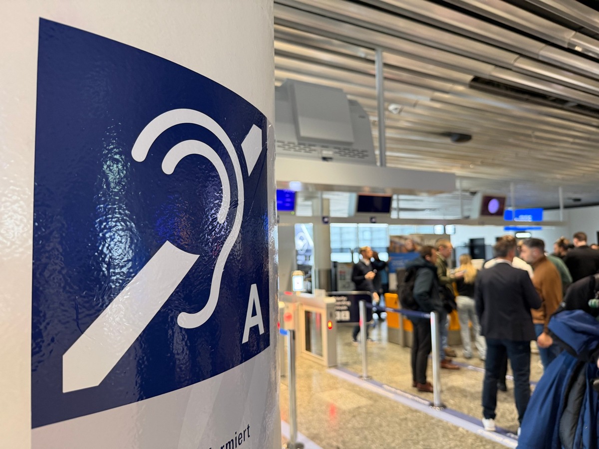 Bildunterschrift Foto 1: Selbsthilfe ist eine wichtige Stimme bei Etablierung von Auracast – Kennzeichnung für Auracast-Streams beim Pilotprojekt am Frankfurter Flughafen (Fotos: DHV)