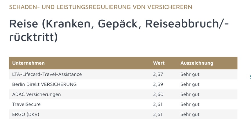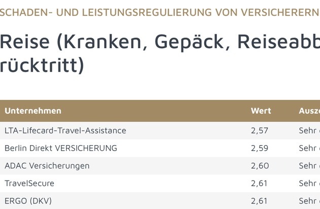 Ranking Schaden- und Leistungsregulierung Reiseversicherer 2026