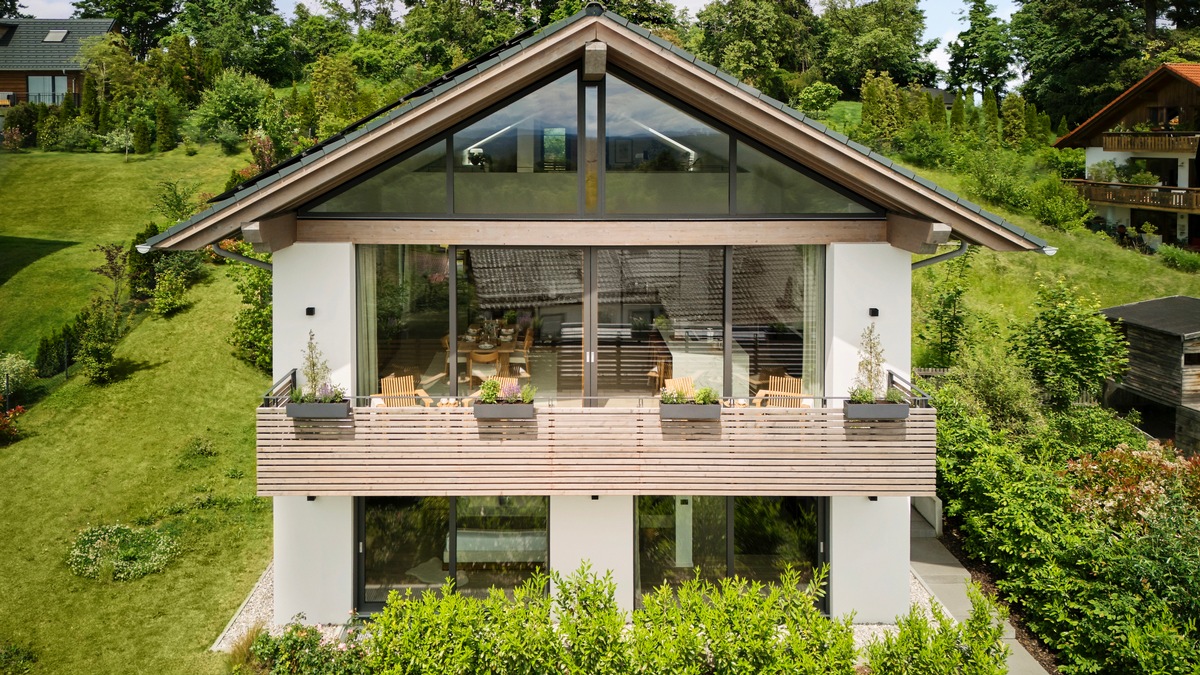 Die moderne Villa, südlich von München und in der Nähe des Starnberger Sees gelegen, vereint zeitlose Eleganz mit der atemberaubenden Naturkulisse der Alpen.