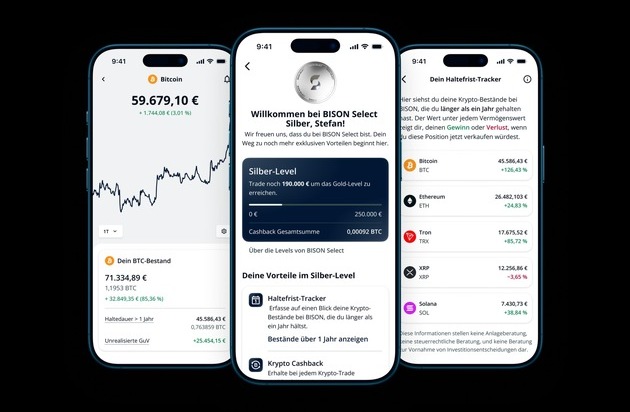 Stuttgart, 17.04.2026 – BISON, die Krypto-Trading-Plattform für Privatanleger der Gruppe Börse Stuttgart, reagiert auf die wachsende Zahl handelsstarker Nutzer und präsentiert BISON Select, ein neues Kundenprogramm für aktive Trader. Damit schafft die Plattform erstmals ein erweitertes Angebot für Anleger mit größeren Investmentzielen und bündelt zusätzliche Funktionen, Services und Community-Angebote innerhalb der App. Member profitieren von einer Vielzahl an ergänzenden Vorteilen bei BISON, darunter Krypto-Cashbacks bis zu 500 Euro im Jahr, provisionsfreie Aktien-Trades, persönliche Account-Manager sowie Zugriff auf weitere Funktionen wie den Haltefrist-Tracker, der Nutzer bei der Prüfung möglicher Steuervorteile unterstützt.