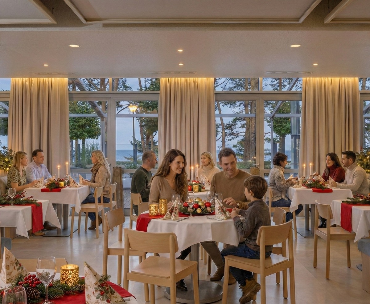 Frankfurt am Main / Berlin, 08. Dezember 2025 – Entspannte Weihnachten und einen festlichen Start ins neue Jahr mit Blick auf die winterliche Ostsee können Gäste bei einem Aufenthalt im IFA Rügen Hotel & Ferienpark verbringen. So genießen Gäste beim Weihnachtsarrangement vier Übernachtungen mit Halbpension inklusive reichhaltigem Frühstücks- und Abendbuffet. Dabei dürfen sie sich am 23. Dezember auf ein Welcome-Abendbuffet freuen, am Heiligabend gibt es ein festliches Weihnachtsbuffet. Die komfortable Auszeit wird ergänzt durch den kostenfreien Zugang zum 1.500 Quadratmeter großen Erlebnisbad, unter anderem mit 46 Meter langer Wasserrutsche. Für die jungen Gäste sorgt ein liebevoll gestaltetes Animationsprogramm für Abwechslung.