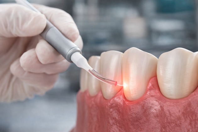 - Laserbehandlung von Periimplantitis: Zur sanften Säuberung und Entzündungsreduktion um Zahnimplantate herum, ohne Schnitte oder Schmerzen.
