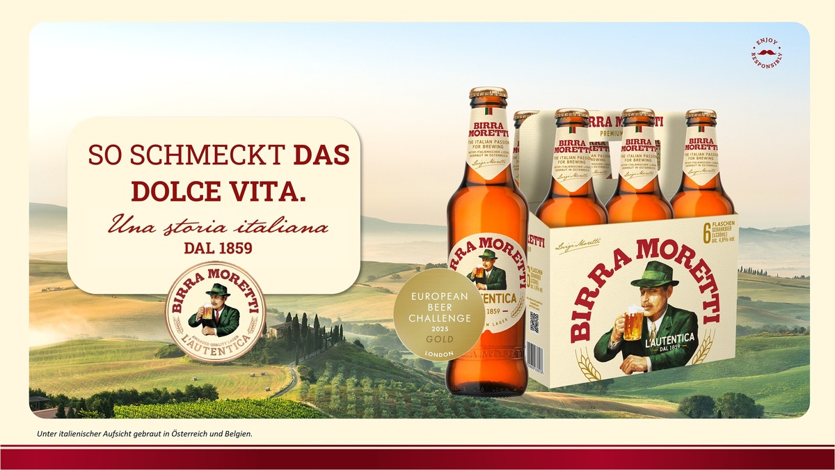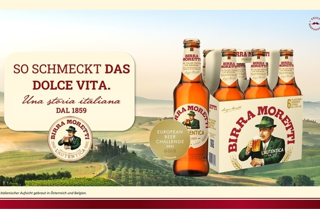 Birra Moretti ist eine traditionsreiche italienische Biermarke, die wie kaum eine andere für das echte Italien, Authentizität und Lebensfreude steht. Diese Attribute stellen die typisch italienische Freude an den simplen Dingen des Lebens – leckeres Essen, großartiges Bier und gute Gesellschaft sowie authentische Qualität und Leichtigkeit – in den Mittelpunkt. Birra Moretti wurde bei der London Beer Competition mit der Goldmedaille 2025 ausgezeichnet.