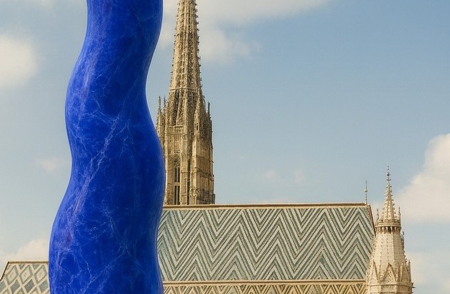 Im Zentrum des Projekts steht der Entwurf eines zweiten Turms, der dem Stephansdom gegenübergestellt ist. Er ist nicht als Bauvorhaben gedacht, sondern als geistige Setzung. Der Turm ist in einem tiefen Blau konzipiert und als unmögliche Forderung aus Lapislazuli formuliert – einem Material, das seit Jahrhunderten für Transzendenz und geistige Dauer steht. Dass ein solcher Turm nicht realisierbar ist, gehört zur Aussage.