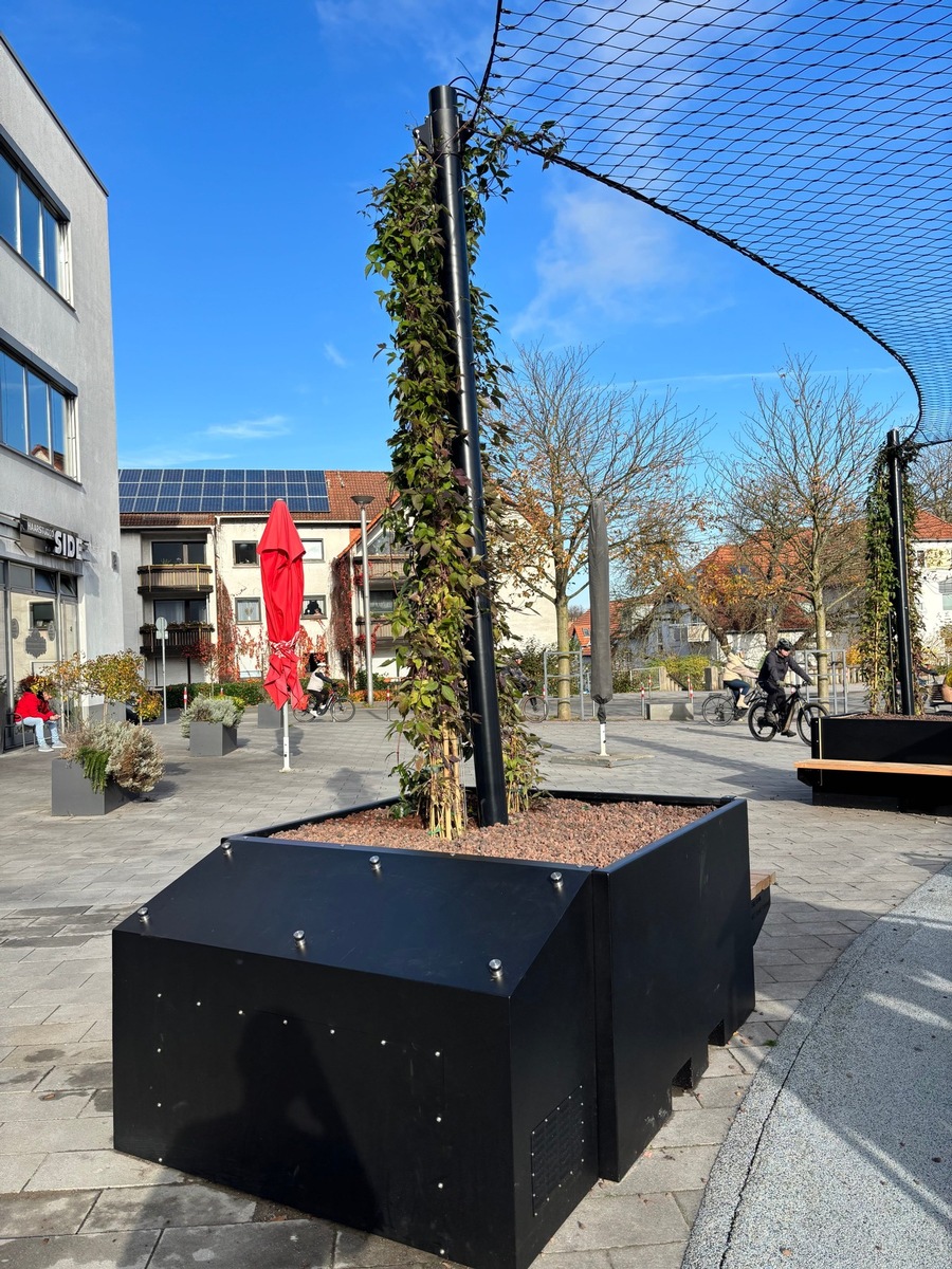 Mit LivingShade hat das Mendener Unternehmen optimal Planen GmbH ein Produkt entwickelt, das den Markt der Beschattungslösungen revolutioniert. Es verbindet Natur, Design und smarte Technologie und schafft so einen einzigartigen Rückzugsort. LivingShade ist für Städte, Kommunen und Einrichtungen eine attraktive Lösung, um Menschen in Außenbereichen vor Hitze zu schützen, die sich insbesondere zwischen Gebäuden und auf versiegelten Flächen anstaut und gerade in den Sommermonaten tagelang nicht entweichen kann. In Iserlohn ist LivingShade bereits im Einsatz, um zukünftig Schatten auf dem Bahnhofsvorplatz zu spenden. „So kommt die Natur zurück in die Stadt. Wir bieten ein nachhaltiges Sonnensegel, das CO2 bindet und gleichzeitig ein angenehmes Klima erzeugt. Was will man mehr?“, fragt Sebastian Bertsch, Geschäftsführer von optimal Planen GmbH.