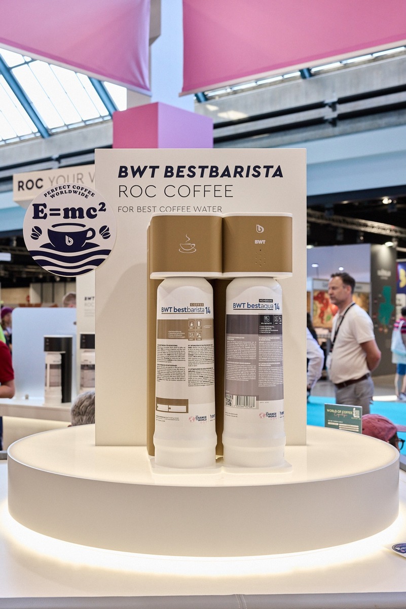 Im Mittelpunkt stehen Filterlösungen wie die BWT bestmax PREMIUM sowie die Umkehrosmoseanlage BWT bestbarista ROC COFFEE. Durch die Kombination aus leistungsstarker Entsalzung und gezielter Aufmineralisierung entstehen definierte Wasserprofile, die Baristi und Gastronomen maximale Kontrolle über den Extraktionsprozess geben und gleichzeitig hochwertige Kaffeemaschinen vor Kalk und Korrosion schützen.