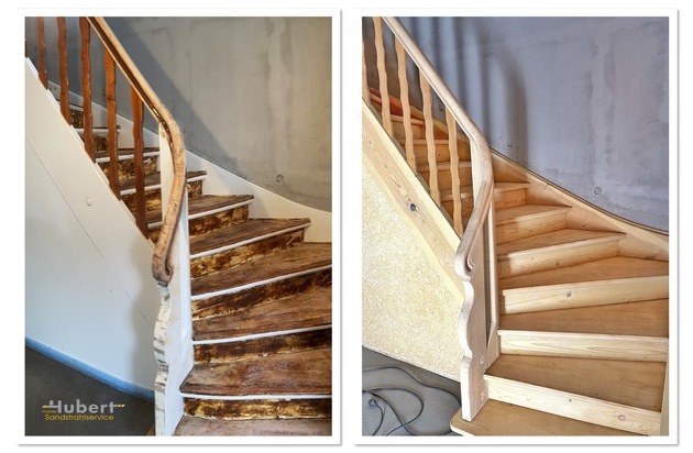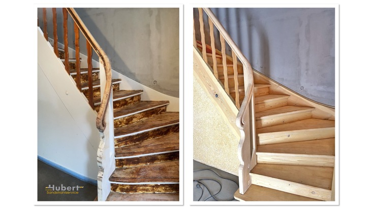 Alte Holztreppen retten: Sandstrahlen statt Schleifen – wie Sandstrahlservice Hubert Substanz bewahrt