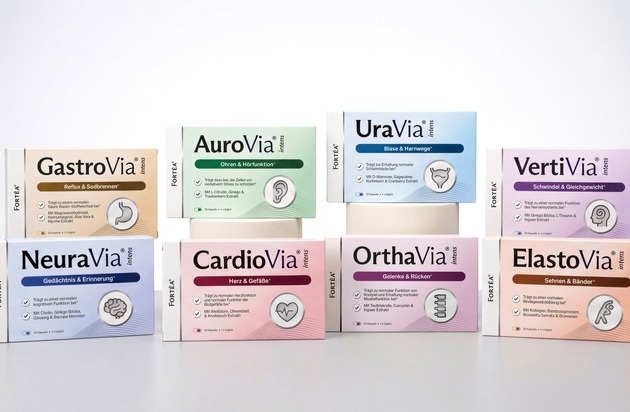 Das Sortiment von FORTEA folgt einem klaren Prinzip: Für jeden Beschwerdebereich gibt es eine eigene, speziell abgestimmte Rezeptur - erkennbar am Namensschema, das sich durch die gesamte Produktlinie zieht. Alle Produkte enden auf -Via, ein bewusst gewähltes Element, das Kontinuität und Verlässlichkeit signalisiert. Der Namensanfang benennt klar den Bereich, den das Produkt unterstützen soll - ohne Fachjargon, direkt verständlich.