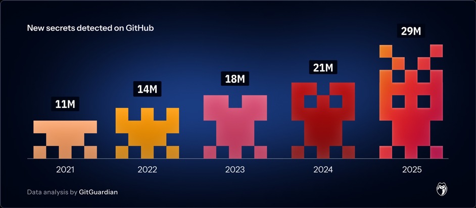 Paris, Frankreich/New York, NY — 17. März 2026 – GitGuardian, der Sicherheits-anbieter hinter der meistinstallierten Anwendung auf GitHub, veröffentlicht die fünfte Ausgabe seines Berichts „State of Secrets Sprawl“ („Lagebericht zur Ausbreitung von Zugangsdaten“). Der Lagebericht verdeutlicht, wie die breite Nutzung von KI im Jahr 2025 die Softwareentwicklung stark verändert hat: Maschinenidentitäten und Zugangsdaten werden mittlerweile deutlich häufiger in öffentlichen und internen Systemen offengelegt. Aktuell wird immer mehr Software entwickelt. Damit tauchen gleichzeitig auch mehr Zugangsdaten offen im Code auf. Die Unternehmen schaffen es jedoch nicht, diese Leaks rechtzeitig zu beheben.
