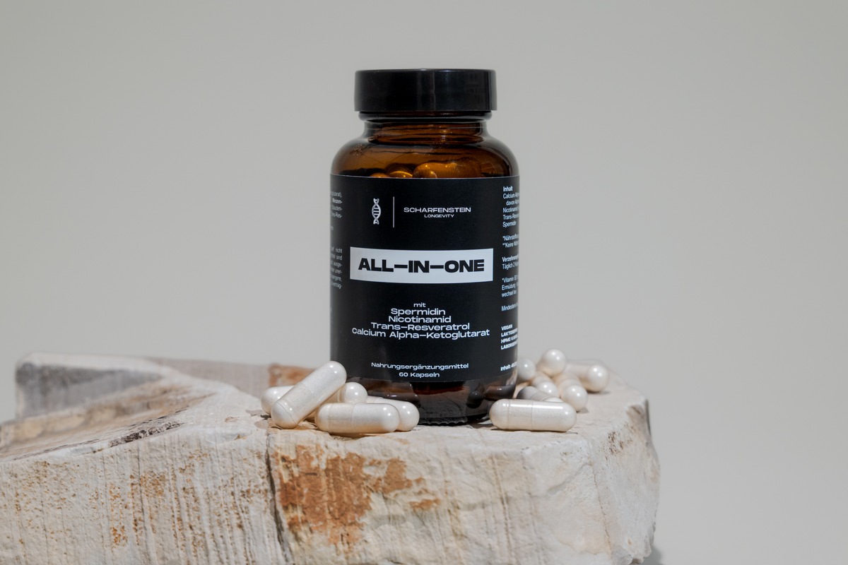 Zum Portfolio von SCHARFENSTEIN Longevity gehört der ALL-IN-ONE Longevity Zellkomplex, eine Kombination aus vier zentralen Wirkstoffen der Longevity-Forschung: Spermidin, Ca-AKG, Trans-Resveratrol und Nicotinamid. Der Ansatz soll wichtige Prozesse des gesunden Alterns unterstützen und dabei bewusst einfach in der Anwendung sein.