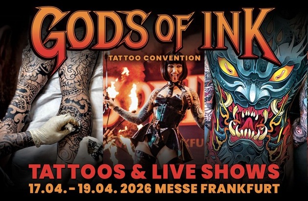 GODS OF INK Tattoo Convention Frankfurt 2026: 17.-19. April 2026, Messe Frankfurt - Halle 1.2