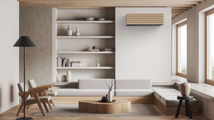 Die neue Ästhetik des DAISEIKAI leitet sich aus seinem Materialkonzept ab - "Zurück zur Natur". Die Verkleidung aus Naturholz, welche aus PEFC-zertifizierten, nachhaltig bewirtschafteten Wäldern stammt, macht das Produkt einzigartig auf dem Markt für Klimaanlagen.