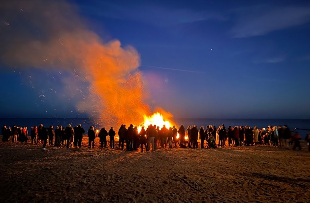 Am 14. Februar werden in Dahme, Grömitz und Kellenhusen traditionell die Wintergeister mit einem großen Strandfeuer vertrieben und der Frühling herbeigerufen. In allen drei Orten geht es mit einem gemeinsamen Fackelumzug entlang der Küste los, der alle Teilnehmer zu einem großen Haufen aus Ästen, Strohballen, Weihnachtsbäumen & Co. führt, welcher gemeinschaftlich mit den Fackeln zum Strandfeuer entzündet wird. Live-Musik, deftige Schmankerl und heiße Getränke sorgen für gemütliche Stimmung und laden dazu ein, den Abend rund um das Feuer zu verbringen.