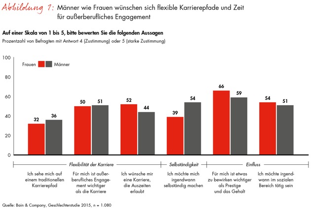 Männer wie Frauen wünschen sich flexible Karrierepfade und Zeit für außerberufliches Engagement. Grafik: Bain & Company