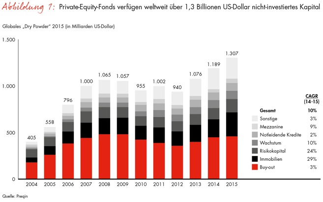 Nicht investiertes Kapital der Private-Equity-Fonds erreicht 2015 weltweit ein Rekordniveau von 1,3 Billionen US-Dollar