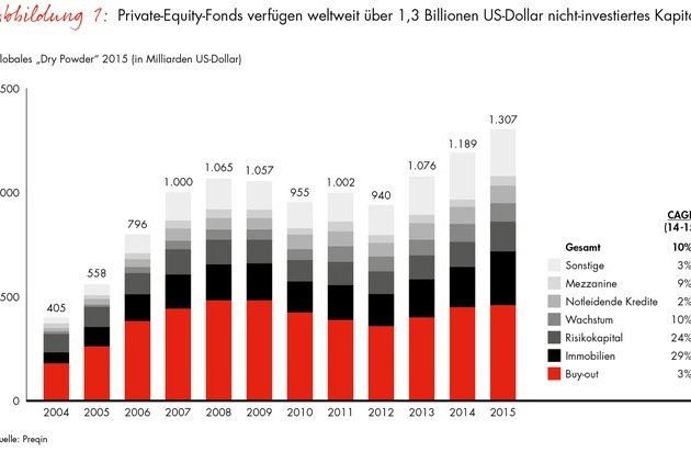 Nicht investiertes Kapital der Private-Equity-Fonds erreicht 2015 weltweit ein Rekordniveau von 1,3 Billionen US-Dollar