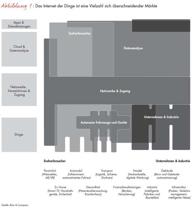 wir es nicht tun?"Das Internet der Dinge gewinnt immer mehr an Bedeutung und wird in den nächsten fünf Jahren sowohl Industrie als auch Konsumenten prägen", erklärt Bain-Experte Schorling. "Umso wichtiger ist es, dass sich Unternehmen schon heute intensiv mit diesem Megatrend auseinandersetzen."