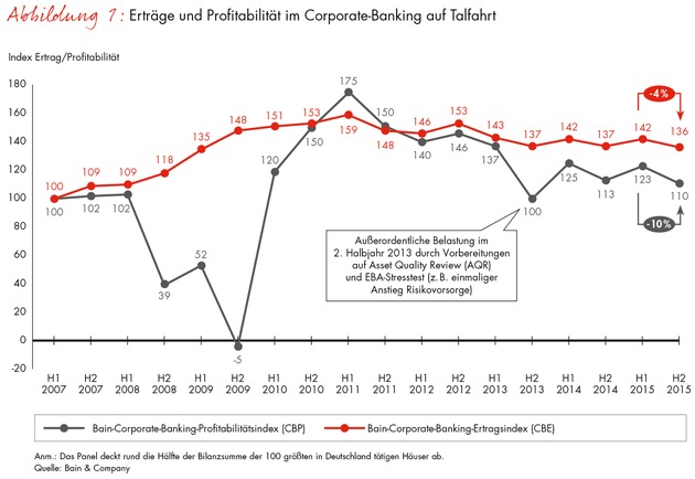 - Profitabilität des Corporate-Banking in Deutschland sinkt im zweiten Halbjahr 2015 deutlich - Zins- wie Provisionsüberschuss der Banken stehen unter Druck - Kreditmarge bewegt sich nahe historischen Tiefstständen - Verschärfte Regulierung führt zu weiter steigenden Verwaltungskosten