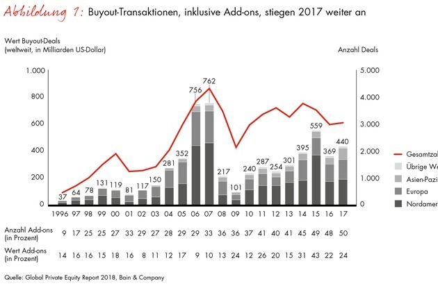 bestehenden PortfoliounternehmenAuf den ersten Blick ist 2017 ein weiteres erfolgreiches Jahr für die weltweite Private-Equity-Branche gewesen: mehr als 700 Milliarden US-Dollar frisches Kapital - ein Betrag leicht höher als das jährliche Steueraufkommen von Bund, Ländern und Gemeinden in Deutschland -, dazu überdurchschnittliche Renditen und steigende Volumina bei Beteiligungskäufen und -verkäufen. Allerdings zeigt der neunte "Global Private Equity Report" der internationalen Managementberatung Bain & Company, dass dadurch enorme Herausforderungen auf die stetig wachsende Zahl von Finanzinvestoren zukommen.