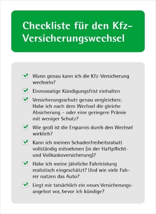 Und nicht zuletzt: Der richtige Zeitpunkt für den Wechsel hängt vom Vertragsbeginn ab. Die meisten Verträge laufen zum Jahresende aus, manche unterjährig. Ein Sonderkündigungsrecht besteht zum Beispiel nach einem Schaden, einer Beitragserhöhung oder beim Fahrzeugverkauf.