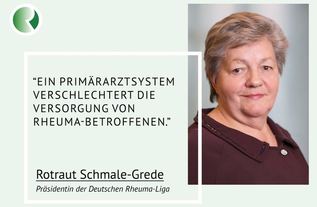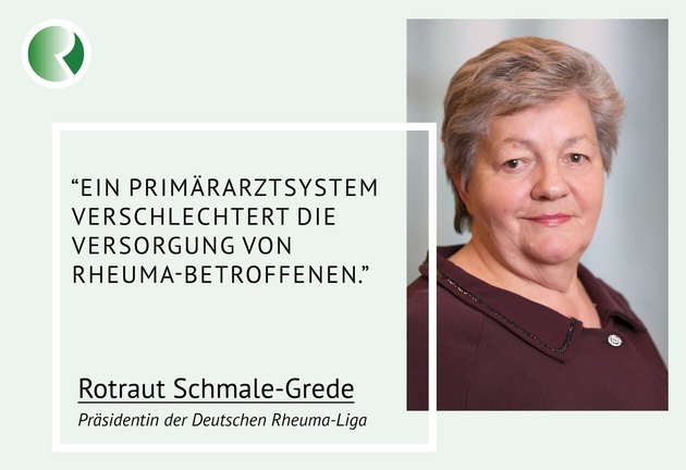 „Ein solches Modell gefährdet nach Ansicht der Rheuma-Liga jedoch die Versorgung von 17 Millionen Rheumabetroffenen in Deutschland. Menschen mit Rheuma bräuchten - so die Präsidentin - einen schnellen Zugang zu Fachärztinnen und Fachärzten, besonders bei akuten Schüben. Ein verpflichtender Primärarzt als Gatekeeper zu den Fachärzten würde das erheblich erschweren.
