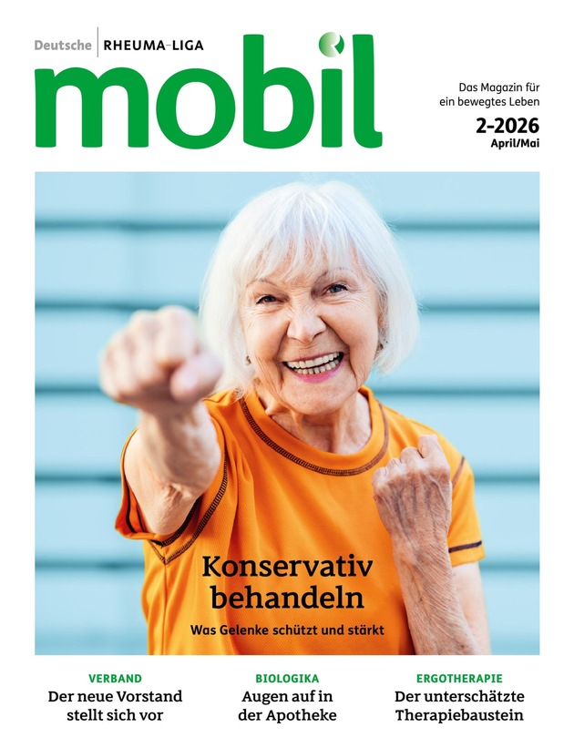 „Viele Menschen verbinden Arthrose mit unvermeidlichem Gelenkverschleiß und zunehmenden Einschränkungen. Doch wer gut informiert ist und früh aktiv wird, kann viel für seine Lebensqualität tun“, sagt Corinna Elling-Audersch, Präsidentin der Deutschen Rheuma-Liga und Mitglied des Redaktionsteams der „mobil“, „mit unserem 24 Seiten starken Themenheft möchten wir Betroffenen Orientierung geben und zeigen, welche Möglichkeiten es gibt, Schmerzen zu lindern und beweglich zu bleiben.“ Das Heft bündelt aktuelles medizinisches Wissen und praktische Tipps für den Alltag. Leserinnen und Leser erfahren, welche Risikofaktoren bei der Entstehung von Arthrose eine Rolle spielen und welche Behandlungen infrage kommen. Ein besonderer Schwerpunkt liegt auf dem Thema Bewegung. Denn regelmäßige körperliche Aktivität kann die Gelenkfunktion verbessern, Schmerzen reduzieren und dazu beitragen, das Fortschreiten der Erkrankung zu verlangsamen.