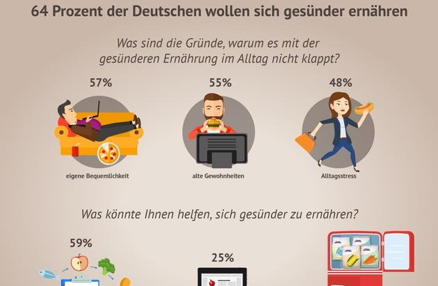 Als größte Hürden für die dauerhafte Umsetzung ihrer Vorsätze sehen die Deutschen die eigene Bequemlichkeit (56,5 Prozent), hartnäckige alte Gewohnheiten (55,3 Prozent) und den Alltagsstress (47,9 Prozent). Hier können Tiefkühl-Heimdienste wie bofrost* durch den persönlichen Service bis an die Haustür und die geschlossene Tiefkühlkette Entlastung bieten.