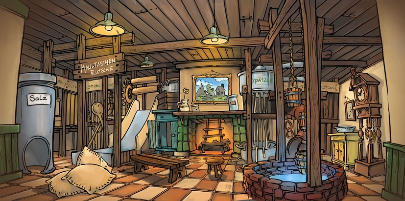 Tripsdrill ist bekannt für seine liebevoll bis ins kleinste Detail gestalteten Attraktionen – so wird es auch für den neuen Indoorspielplatz umgesetzt. Auf einer Fläche von rund 200 Quadratmetern wartet dann eine Spielwelt, die in dieser Form einmalig ist. Der Indoorspielplatz ist als schwäbische Speisekammer thematisiert und verbindet klassische Spielelemente wie Rutschen und Kletternetze mit interaktiver Projektion, Lachspiegeln, einem Fotopunkt sowie liebevollen Details. Die Gestaltung greift den unverwechselbaren, schwäbisch-humorvollen Tripsdrill-Stil auf und setzt dies in einer familienfreundlichen Atmosphäre um. Das freie, kreative Spielen steht hier im Mittelpunkt.