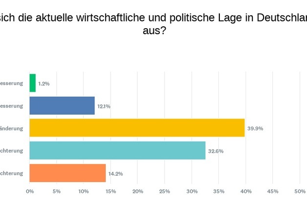 Die Folgen der wirtschaftlichen und politischen Lage in Deutschland spüren die Ingenieurbüros deutlich: Mit 46,8 Prozent berichtet fast die Hälfte der Büros von einer Verschlechterung, nur 13,3 Prozent spüren eine Verbesserung.