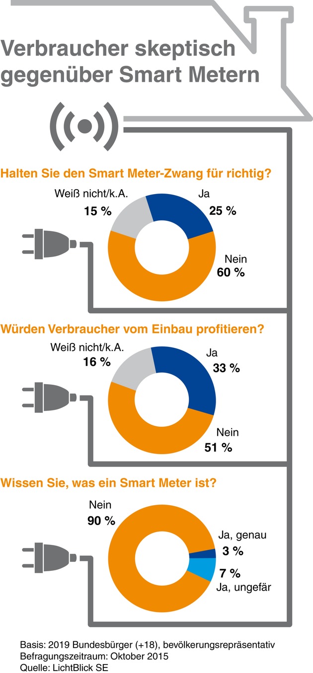 "Die Verbraucher haben zu Recht erhebliche Zweifel, ob ihnen intelligente Zähler helfen, Strom und Geld zu sparen. Es ist deshalb kein Wunder, dass eine große Mehrheit den Regierungsplänen mit Skepsis begegnet", sagt Gero Lücking, Geschäftsführer Energiewirtschaft von LichtBlick.