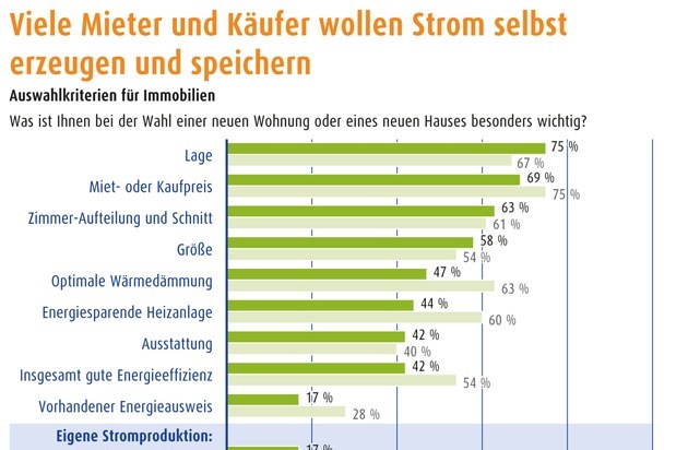 Immobilien-Umfrage: Viele Mieter und Käufer wollen Strom selbst erzeugen und speichern