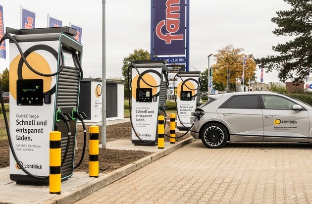 Die LichtBlick eMobility GmbH hat heute den ersten Standort ihres neuen Schnellladenetzes QuickCharge in Betrieb genommen. Am famila Markt in Reinbek bei Hamburg stehen ab sofort drei HYC 300 Schnellladesäulen bereit. Damit setzt LichtBlick den Startschuss für ein umfassendes Netz leistungsstarker Ladeinfrastruktur in Norddeutschland.