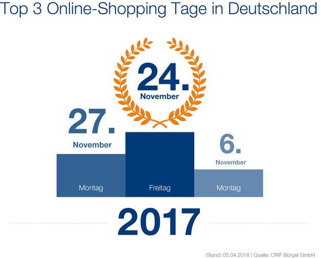 Der E-Commerce Markt in Deutschland boomt. Mittlerweile bestellen pro Jahr 47 Millionen Menschen in Deutschland Produkte für private Zwecke über das Internet. Doch gibt es Tage, an denen die Deutschen besonders gerne online shoppen? Dieser Frage ist die Wirtschaftsauskunftei CRIFBÜRGEL nachgegangen und hat das Jahr 2017 hinsichtlich der Bonitätsabfragen seitens der Online-Shops analysiert, um so Rückschlüsse auf das Shopping-Verhalten der Deutschen zu erhalten.