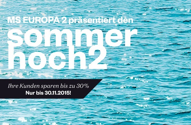 Nach dem Erfolg im vergangenen Jahr wird die Vermarktungskampagne "Sommerhoch2" auch 2015 wiederholt und macht zu Beginn des Herbstes gleich wieder Lust auf Sommer. Die 360° Kampagne "Sommerhoch2" stellt einen innovativen und integrierten Weg der Vermarktung dar: Im Fokus der Außenwerbung steht der auffällige Kampagnentitel und schafft Neugierde und Aufmerksamkeit ohne direkt auf das Produkt hinzuweisen. Dahinter stecken sechs unterschiedliche Reisen mit der EUROPA 2 im Frühjahr 2016, die den Gästen inspirierende Erlebnisse in insgesamt 35 Destinationen des östlichen und westlichen Mittelmeers bieten. Neben allen grundlegenden Informationen zu den Routen und Preisen finden die Gäste sowohl auf der Kampagnen-Website als auch im Folder wertvolle Geheimtipps für die angesagtesten Hotspots entlang der jeweiligen Route.
