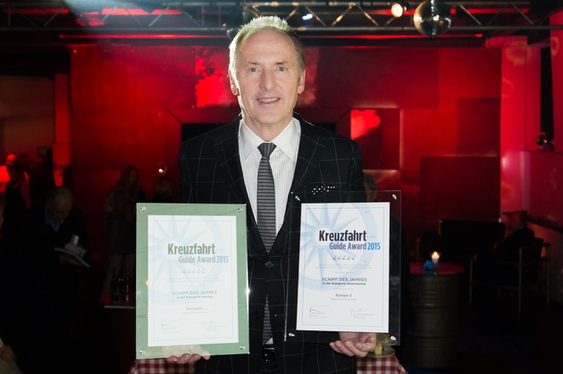 Im Rahmen des Kreuzfahrt Kongresses 2015, dem jährlichen Branchentreff am 12. November 2015, zeichnete der Bellevue and More Verlag die besten Kreuzfahrtschiffe mit dem Kreuzfahrt Guide Award 2015 aus. Gleich zwei Schiffe von Hapag-Lloyd Kreuzfahrten prämierte die Jury: Das Fünf-Sterne-Plus* Luxusschiff EUROPA 2 erhielt die Auszeichnung als "bestes Schiff" in der Kategorie "Gastronomie" und das Expeditionsschiff HANSEATIC wurde für das "beste Routing" ausgezeichnet. Karl J. Pojer, Vorsitzender der Geschäftsführung von Hapag-Lloyd Kreuzfahrten, nahm den Preis von den Herausgebern des Guides, Uwe Bahn und Dr. Johannes Bohmann entgegen.