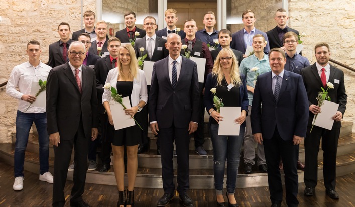 Diese waren auch anwesend als die 21 jungen Menschen den mit bis zu 1.000 Euro dotierten Förderpreis von Thüringens Wirtschafts- und Wissenschaftsminister Wolfgang Tiefensee entgegen nahmen. In seiner Festrede erklärte er wie wichtig die richtige Balance zwischen Empathie und Wettbewerb sei, um im Berufsleben erfolgreich zu sein. "Sie müssen die Bereitschaft haben, andere Wege zu gehen und Neues zu denken", riet Wolfgang Tiefensee den jungen Menschen, und betonte, das Ausgrenzung der falsche Ansatz und Offenheit für Fremdes umso wichtiger sei. "Es ist wichtig, jemandem Respekt zu zollen und zu danken, genau wie die WAGO-Stiftung es tut." Die Preisverleihung, die auch in diesem Jahr im feierlichen Ambiente des Achtecksaals im Schloss Sondershausen stattfand, wurde von Kristin Gräfin von Faber-Castell moderiert. Antje Hochwind, Landrätin des Kyffhäuserkreises, richtete sich in ihrem Grußwort ebenfalls direkt an die erfolgreichen Absolventen: "Sie können stolz auf Ihre Leistung sein. Ihnen stehen jetzt alle Türen offen. Ich hoffe, dass Sie der Region verbunden bleiben, denn wir brauchen Sie hier als Fachkräfte."