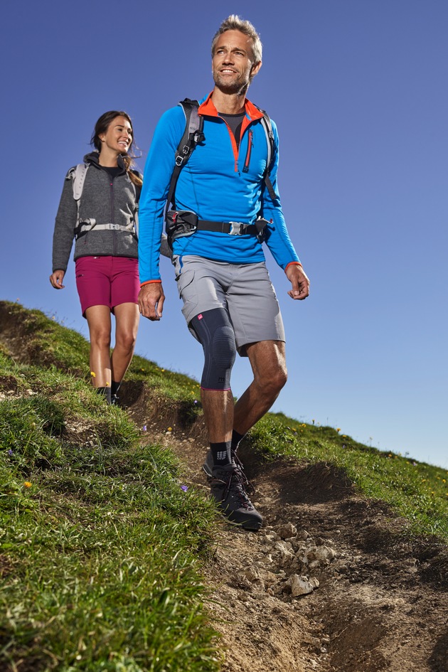 Beim Wandern bietet eine Kniebandage dem Gelenk Unterstützung und Entlastung. Venenpatienten sollten dabei auch ihre medizinischen Kompressionsstrümpfe tragen. Robuste Ausführungen wie mediven active mit Komfortsohle und Fersenverstärkung eignen sich speziell für Wander- und Arbeitsschuhe. Unterstützung für die Füße geben orthopädische Einlagen wie die igli Carbon-Einlagen. Sie aktivieren die Fußmuskulatur und korrigieren Fußfehlstellungen.