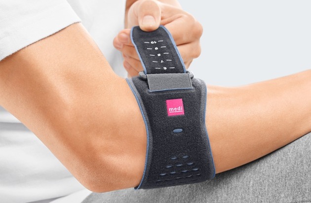Die medi Epibrace ist beim Tennis- und Golferellenbogen, Mausarm sowie für den linken und rechten Arm einsetzbar. Sie besitzt jetzt eine flexible Pelotte mit 3D-Profil, die therapiegerecht positioniert werden kann. Zusammen mit dem Gurtband, mit dem der Druck auf die schmerzenden Sehnenansätze individuell dosiert werden kann, sorgt sie für eine effektive Entlastung. Dank der Nummerierung am Gurtband wird die gewünschte Druckintensität individuell eingestellt. Die medi Epibrace fördert die Durchblutung und unterstützt den Heilungsprozess.