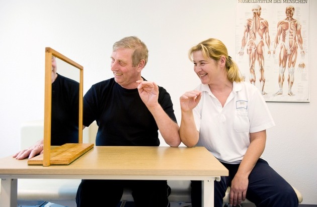 Dabei wird der Körper des Betroffenen in der Mitte gespiegelt, die betroffene Seite sieht er nicht. Mit der gesunden Hand macht er Greif- und Bewegungsübungen. Der Blick in den Spiegel täuscht das Gehirn und vermittelt den Eindruck, als bewege sich der betroffene Arm. Diese simple Illusion zeigt eine verblüffende Wirkung, wie türkische Ärzte jetzt in einer Studie eindrucksvoll belegten. Eine Gruppe von 30 Schlaganfall-Patienten wurde unterteilt. Die Hälfte erhielt eine intensive konventionelle Rehabilitation, die andere Hälfte zusätzlich 30 Minuten Spiegeltherapie pro Tag. Beide Gruppen erzielten innerhalb von vier Wochen große Fortschritte, doch in der Gruppe mit Spiegeltherapie waren die funktionellen Verbesserungen deutlich größer. Zusätzlich empfanden diese Patienten auch weniger Schmerzen.