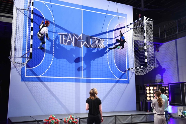Die erste Frau und der erste Spitzensportler stellen am Samstag, 19. März 2016, um 20:15 Uhr, auf ProSieben ihre "TEAMWORK"-Fähigkeiten unter Beweis: Model Lena Gercke (28) und Handball-Trainer Stefan Kretzschmar (43) spielen für jeweils einen ihrer Fans um mehr als 100.000 Euro.