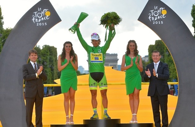 Auf dem Pariser Prachtboulevard gratulierte SKODA Personalvorstand Bohdan Wojnar dem Gesamtsieger Christopher Froome und überreichte die eigens aus grünem Kristallglas gestaltete Siegertrophäe an den Gewinner des Grünen Trikots, Peter Sagan. Erstmals sponserte der Autohersteller in diesem Jahr das Grüne Trikot für den besten Sprinter der Frankreich-Rundfahrt. Das Weiße Trikot als bester Nachwuchsfahrer gewann Nairo Quintana. Als bester Bergfahrer wurde Tour-Sieger Froome mit dem Gepunkteten Trikot geehrt. Für alle vier Sportler gab es Trophäen aus tschechischem Kristallglas - entworfen von SKODA und hergestellt in der tschechischen Glasmanufaktur Preciosa.