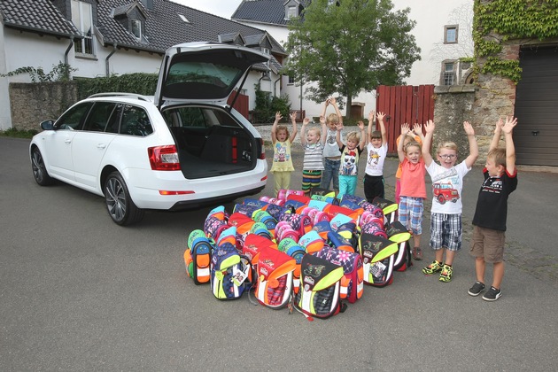 Für das lustige Video zur Facebook-Aktion #DuPackstDas waren 14 Kinder mit vollem Einsatz dabei, um das Gepäckabteil eines SKODA Octavia Combi randvoll mit Schulranzen zu beladen. Keine leichte Aufgabe: Mit einem Volumen von 610 Litern - bei umgeklappter Rücksitzbank wären es sogar 1.740 Liter - weist der Bestseller den mit Abstand größten Kofferraum in seinem Segment auf. Während SKODA Fans unter www.facebook.com/skodade fleißig Beiträge ihrer persönlichen Packgeschichten posten, befinden sich die fabrikneuen Scout Schulranzen bereits auf dem Weg nach Ludwigshafen.