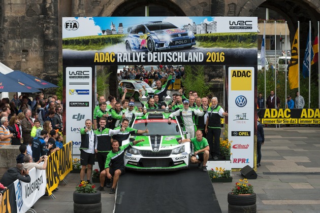 Trier - SKODA hat bei der Rallye Deutschland einen überlegenen Vierfacherfolg gefeiert und damit seine beeindruckende Siegesserie in der FIA Rallye-Weltmeisterschaft (WRC 2) fortgesetzt. Wie schon vor drei Wochen bei der Rallye Finnland fuhr das SKODA Werksduo Esapekka Lappi/Janne Ferm (FIN/FIN) im FABIA R5 einen überlegenen Sieg in der WRC-2-Kategorie ein. Auf Platz zwei kamen ihre Teamkollegen von SKODA Motorsport, Jan Kopecky/Pavel Dresler (CZ/CZ), ins Ziel und machten somit den Doppelsieg für das Team aus Mladá Boleslav perfekt.