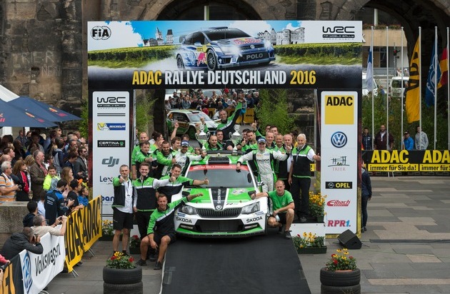 Trier - SKODA hat bei der Rallye Deutschland einen überlegenen Vierfacherfolg gefeiert und damit seine beeindruckende Siegesserie in der FIA Rallye-Weltmeisterschaft (WRC 2) fortgesetzt. Wie schon vor drei Wochen bei der Rallye Finnland fuhr das SKODA Werksduo Esapekka Lappi/Janne Ferm (FIN/FIN) im FABIA R5 einen überlegenen Sieg in der WRC-2-Kategorie ein. Auf Platz zwei kamen ihre Teamkollegen von SKODA Motorsport, Jan Kopecky/Pavel Dresler (CZ/CZ), ins Ziel und machten somit den Doppelsieg für das Team aus Mladá Boleslav perfekt.
