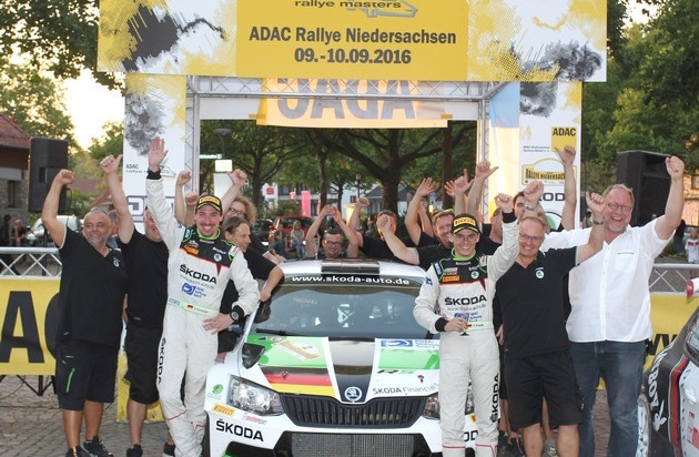 "Das war ein ganz wichtiger Schritt zum Titel, aber noch haben wir ihn nicht in der Tasche. Wir mussten im Duell mit Mads Östberg und Christian Riedemann jederzeit hochkonzentriert bleiben, zum Glück ist uns das gelungen. Die Rallye Niedersachsen ist wieder genial für uns gelaufen", sagt Fabian Kreim bei der Siegerehrung vor dem historischen Rathaus von Osterode überglücklich. Der 23 Jahre alte Youngster wiederholte im SKODA FABIA R5 zusammen mit Copilot Frank Christian seinen Triumph aus dem Vorjahr. Kreim gewann auf den Asphaltpisten mit kurzen Schotterstücken elf der 13 Wertungsprüfungen am Rande des Harzes.
