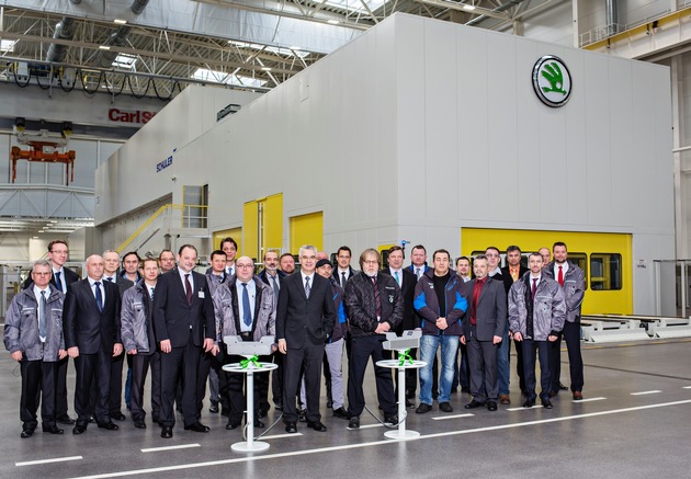 Die neue PXL II-Pressenstraße im SKODA Werk Mladá Boleslav ist am gestrigen Donnerstag im Beisein von Michael Oeljeklaus, SKODA Vorstandsmitglied für Produktion und Logistik, sowie Jaroslav Povsik, Vorsitzender der Gewerkschaft KOVO MB, feierlich eröffnet worden. Die Probe- und Optimierungsphase ist nun in vollem Gange.