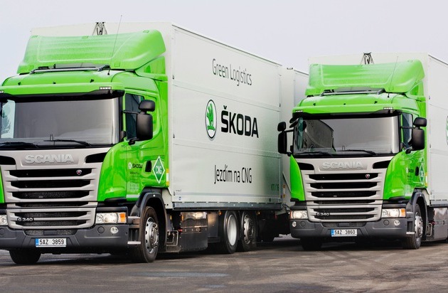 SKODA Umweltstrategie ,GreenFuture'SKODA baut seine umweltfreundliche Logistikflotte weiter aus und stellt im Stammwerk Mladá Boleslav vier Lastwagen mit CNG-Antrieb in Dienst (CNG = Compressed Natural Gas). Diese vier Fahrzeuge werden für den Transport innerhalb des Firmengeländes verwendet, ein weiterer ist für den Zulieferbetrieb vorgesehen. Ihr Erdgasantrieb ermöglicht eine signifikante Reduzierung der Schadstoffemissionen und Transportkosten. Darüber hinaus setzt SKODA künftig auf ausgewählten Routen auf sogenannte ,Gigaliner'. Dies spart jährlich bis zu 200 Tonnen CO2 ein.